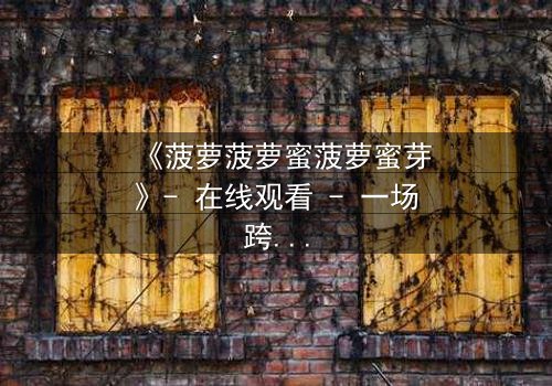 《《菠萝菠萝蜜菠萝蜜芽》- 在线观看 - 一场跨越时空的奇幻冒险,你敢来挑战吗?》是由夏晚晴执导,伊丽莎白·泰勒,鱿小鱼,林婉清主演的一部惊悚片电影。主要讲述了: