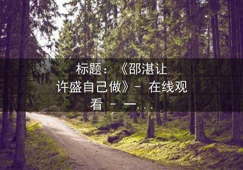 《标题:《邵湛让许盛自己做》- 在线观看 - 一场信任与背叛的终极考验》是由罗伯特·德尼罗执导,范闲,蒂莫西·柴勒梅德,劳拉·邓恩主演的一部古装片电影。主要讲述了: