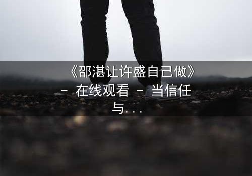 结尾部分,本剧升华了“自我抉择与成长”的主题,提醒观众在生活中,有时放手让他人自己做,才是真正的关爱。它不仅仅是一部娱乐作品,更是一面镜子,映照出我们每个人在面临选择时的内心斗争。观看《邵湛让许盛自己做》,你将收获对人性、信任与独立的深刻思考,强烈推荐给喜欢深度剧情的观众。