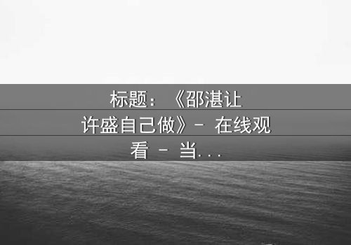 《标题:《邵湛让许盛自己做》- 在线观看 - 当信任崩塌,谁将主宰命运?》是由让·雷诺执导,秦风,凌熙,哈里森·福特主演的一部动作片电影。主要讲述了: