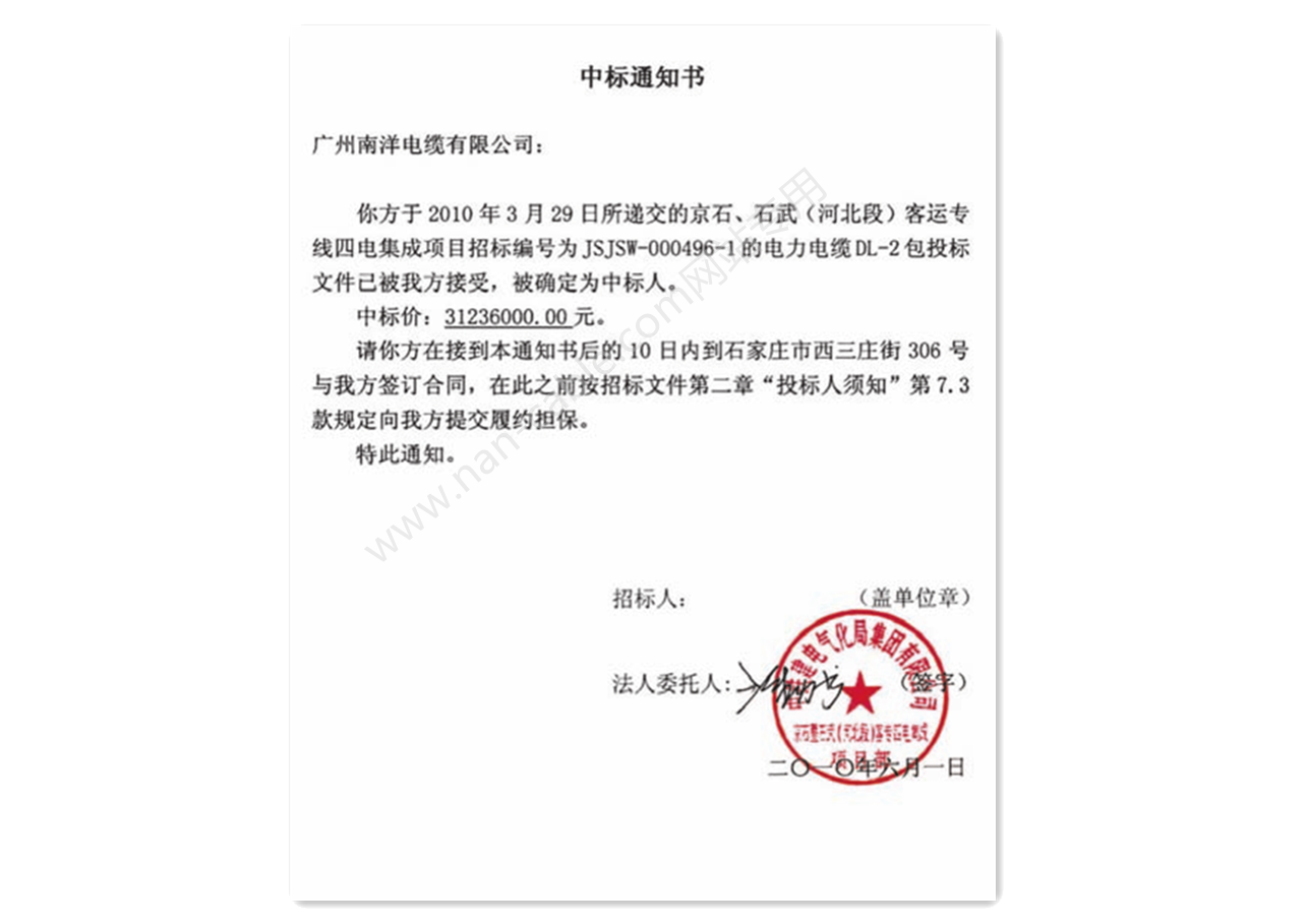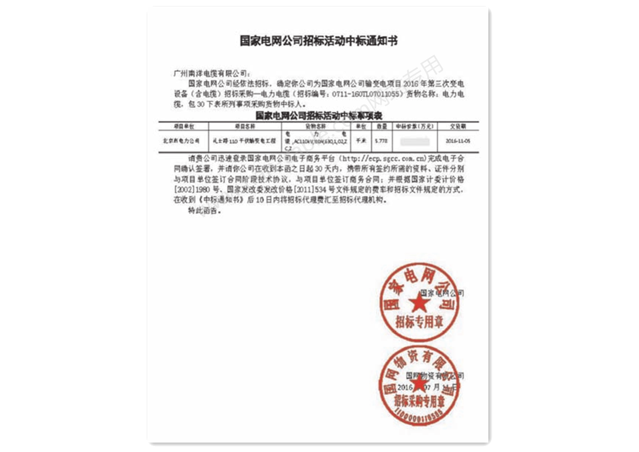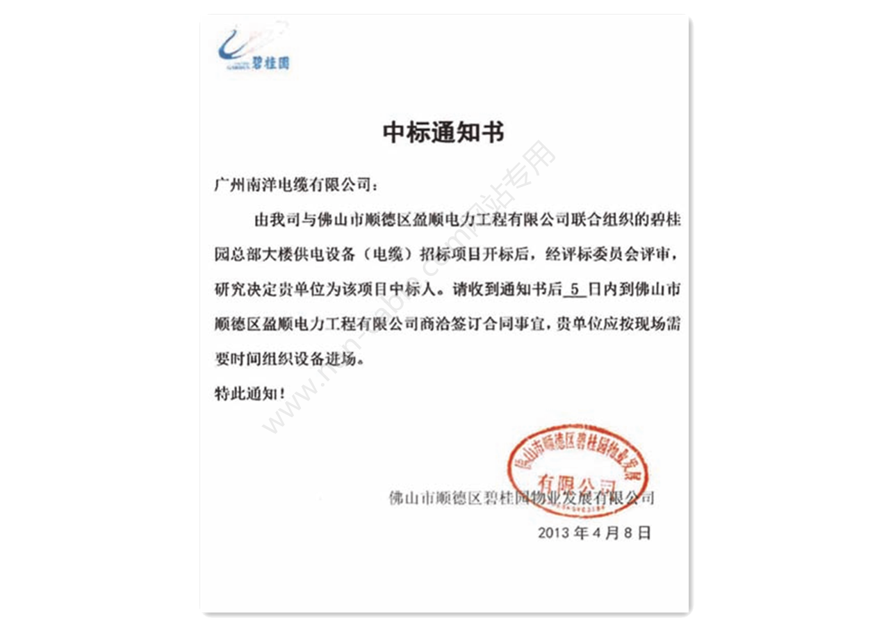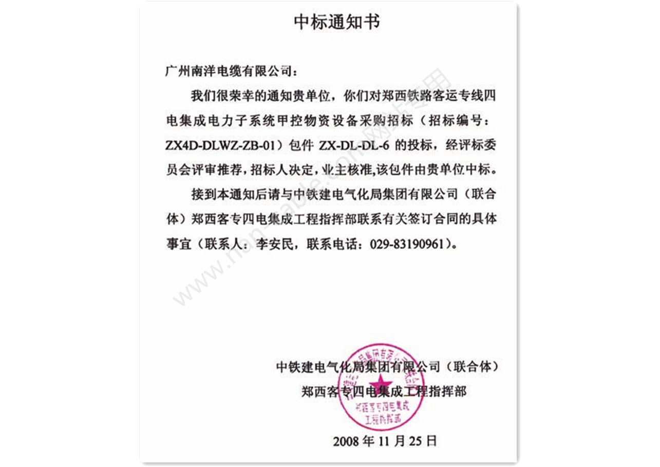 首頁  > 業績案例 > 中標證書
